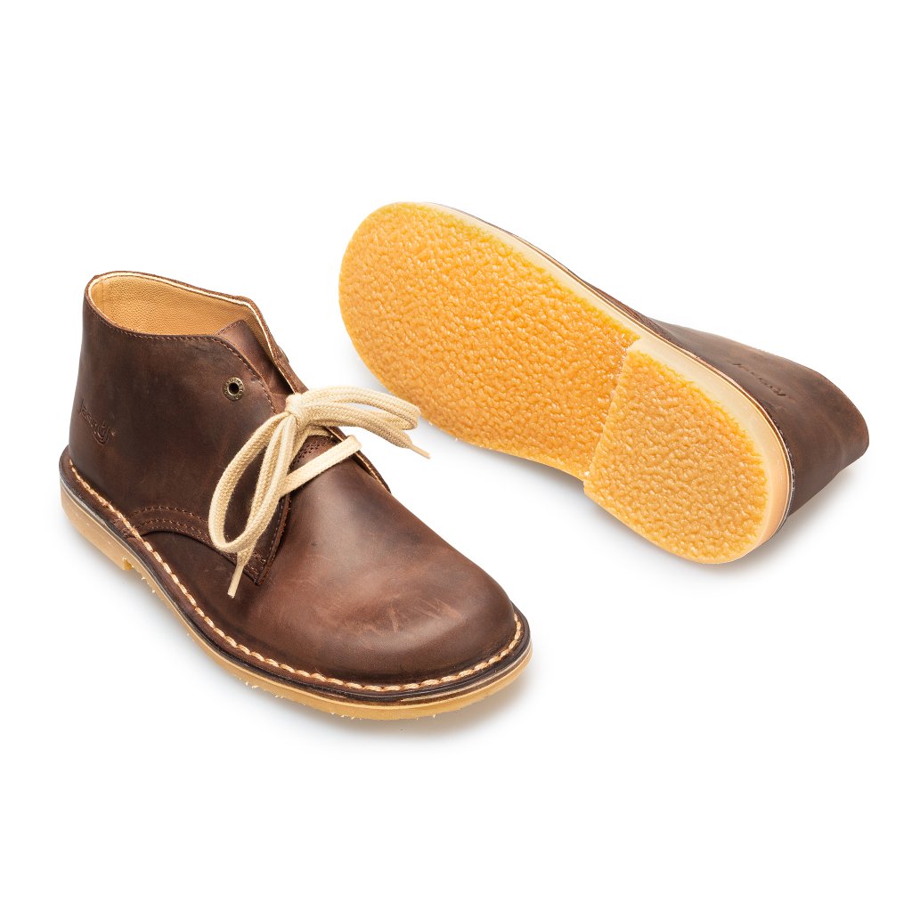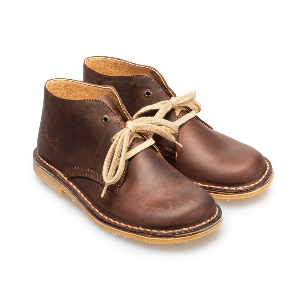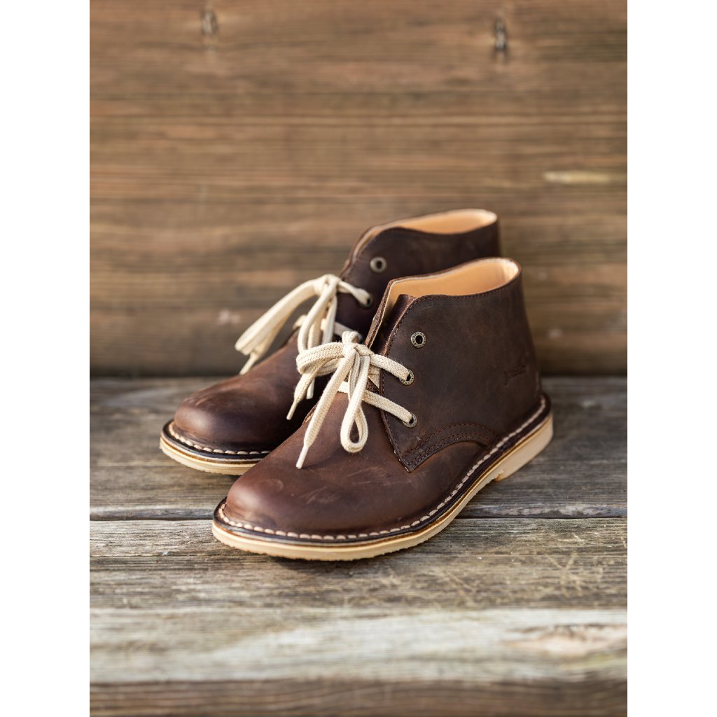 Tyto hnědé kožené kotníkové boty spojují jednoduchost a ruční řemeslnou kvalitu.